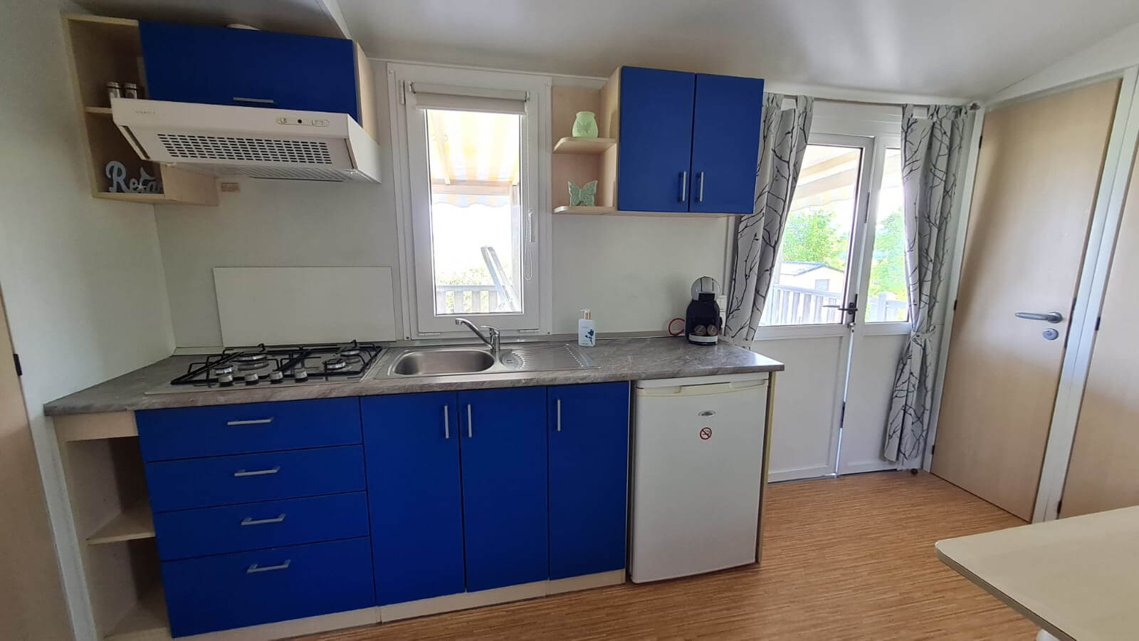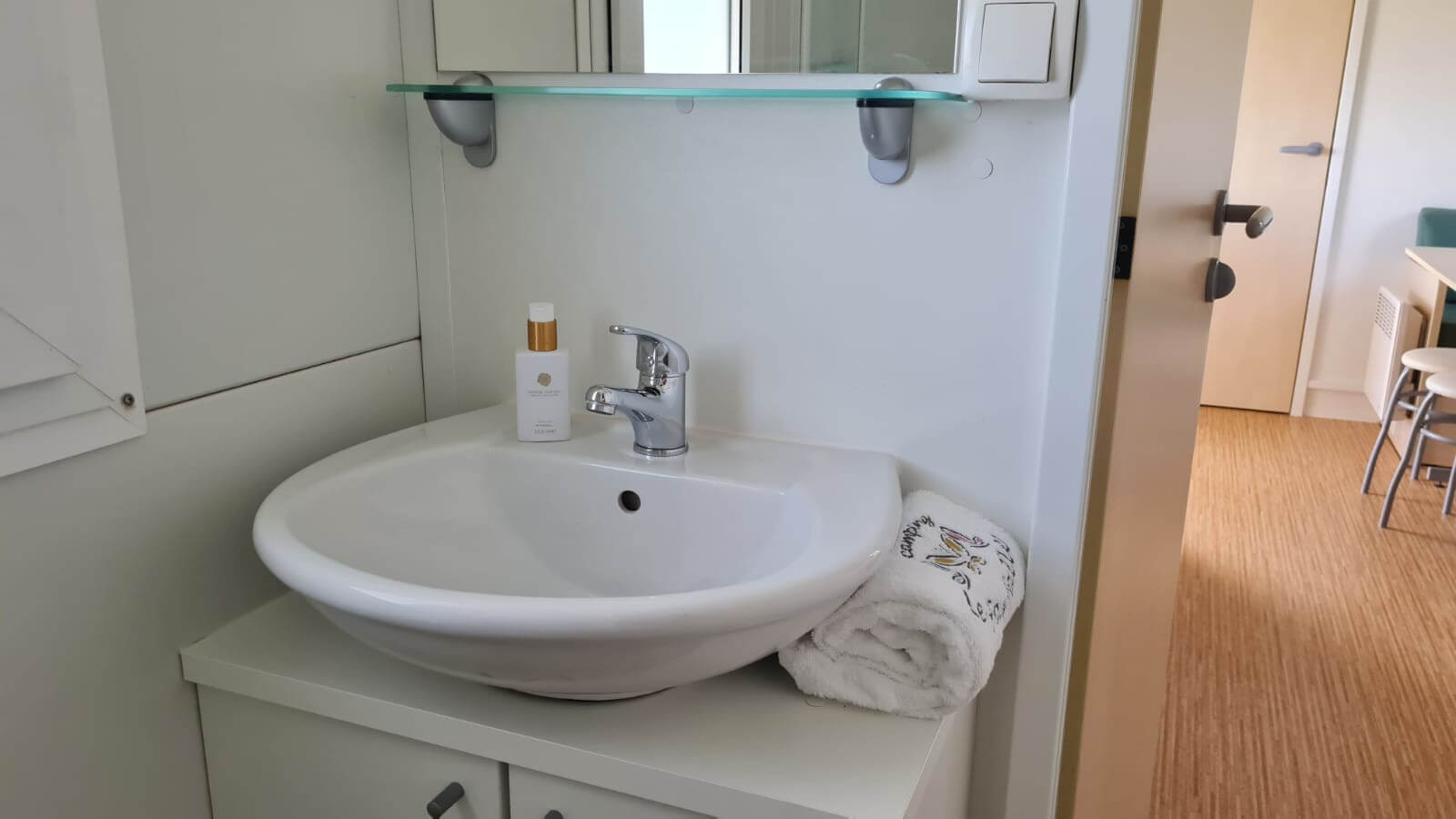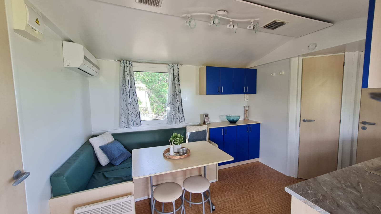 Opgemaakte bedden, keukenpakket, eindschoonmaak, airconditioning, welkomstpresentje, en alle campingfaciliteiten (zwembad, wifi, speeltoestellen).