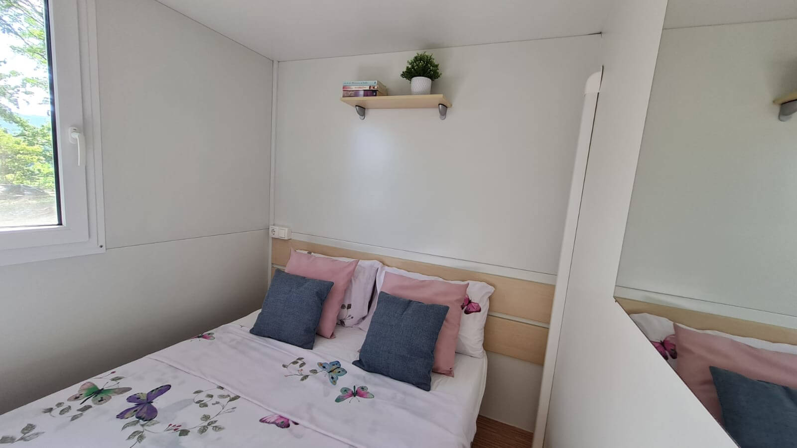 De chalets zijn comfortabel ingericht en voorzien van alle voorzieningen voor een zorgeloze vakantie. Elk chalet biedt ruimte aan maximaal 5 personen en beschikt over twee slaapkamers, een moderne badkamer met toilet, en een gezellig leefgedeelte met volledig uitgeruste keuken. Door de airconditioning en verwarming kun je hier van april tot oktober comfortabel verblijven. Zelfs tijdens warme zomerdagen blijft het binnen aangenaam koel.
