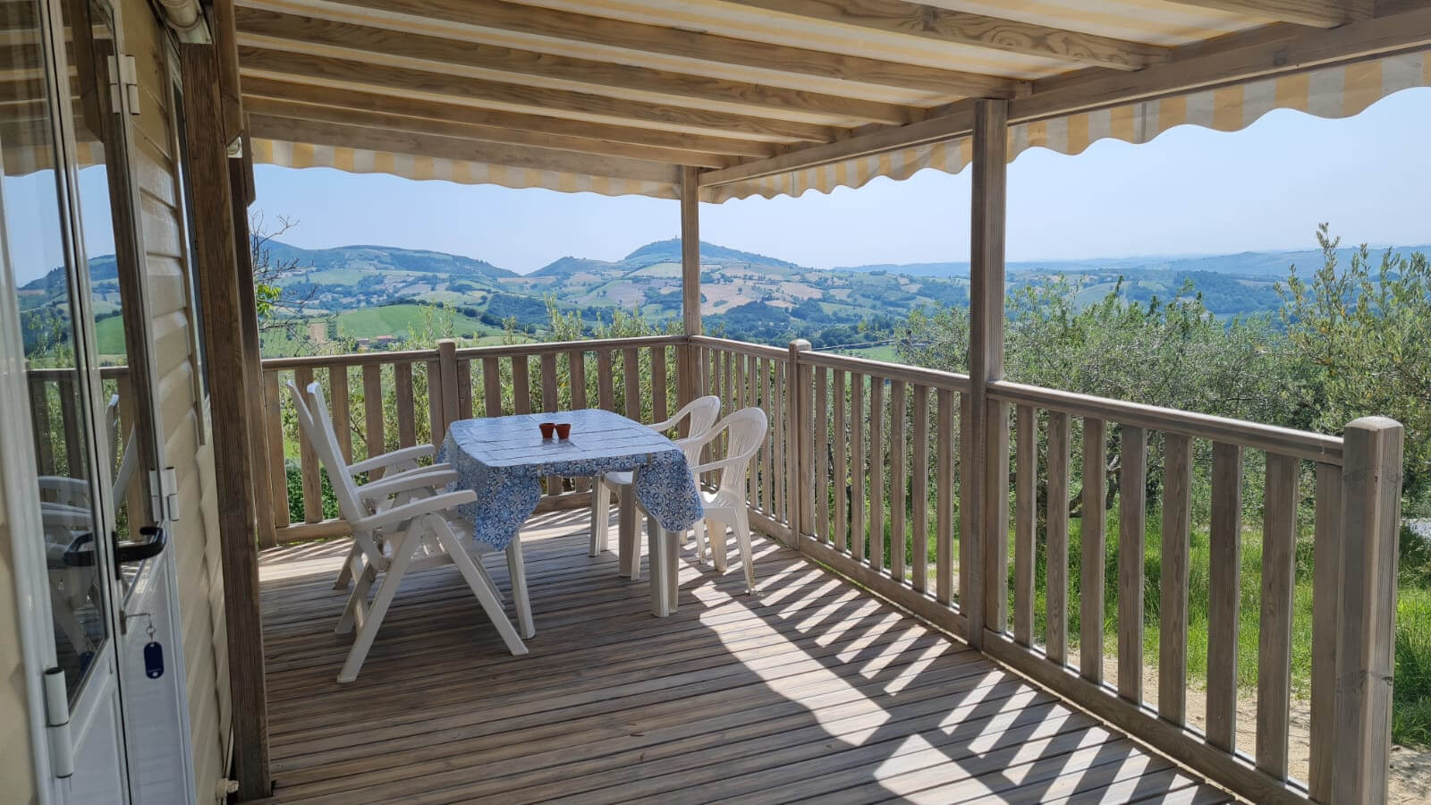 Op het ruime terras voor de accommodatie is het zalig vertoeven terwijl je geniet van het weids uitgestrekte panorama over de glooiende heuvels van Le Marche. Pure ontspanning met een uitzicht om nooit te vergeten!