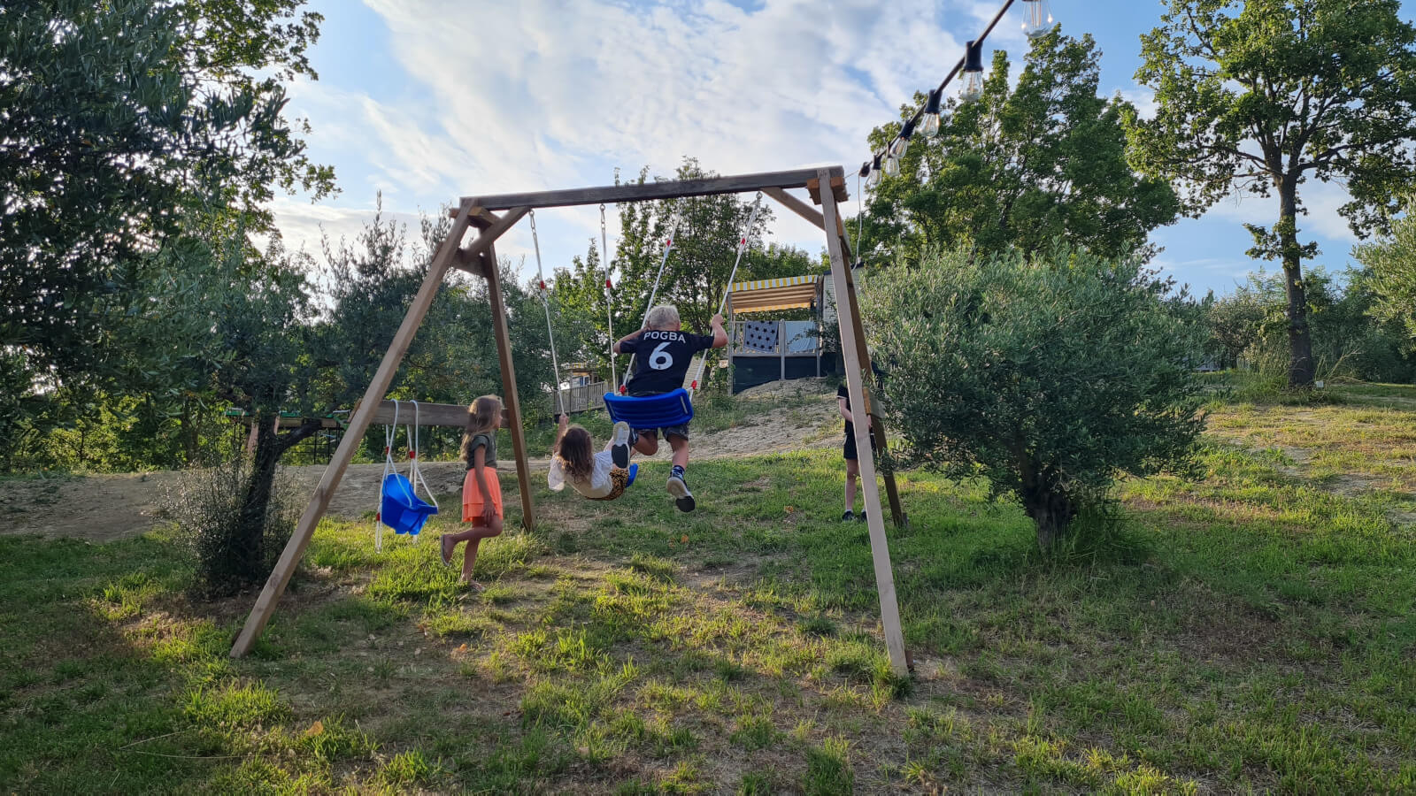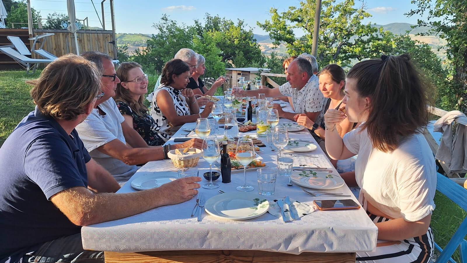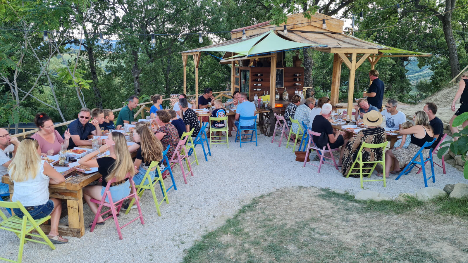 Eén avond in de week serveren we een Italiaans viergangendiner (kindvriendelijk aangepast) en op vrijdag is het pizza-avond. Gezellig aanschuiven aan de lange tafels, genieten van het eten en het uitzicht, en kennismaken met medecampinggasten. Simpel en ontspannen, zoals een vakantie hoort te zijn.