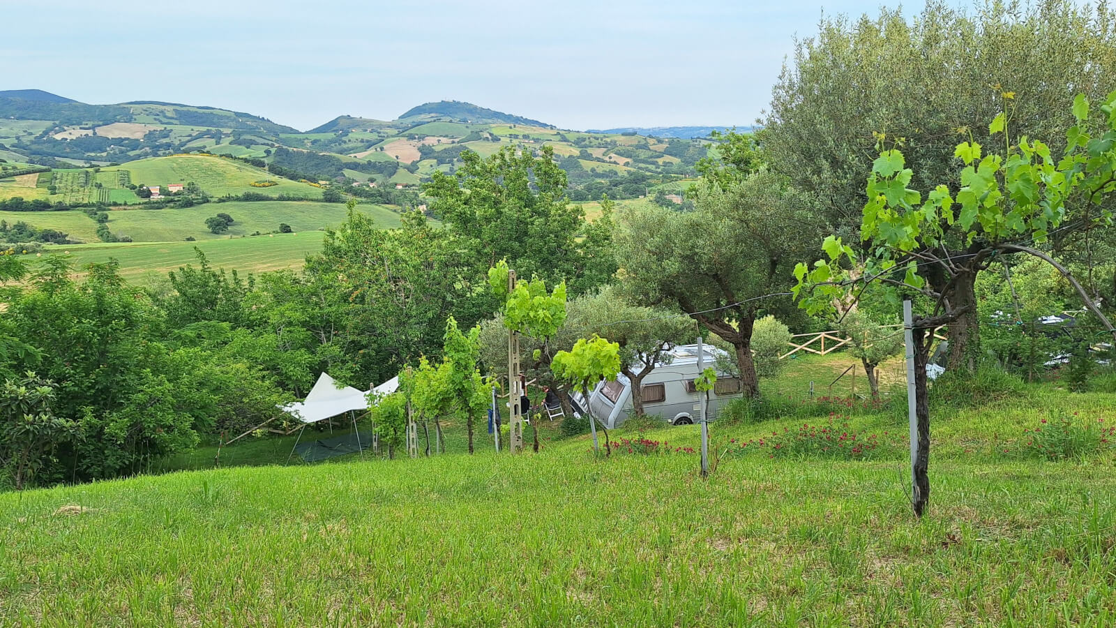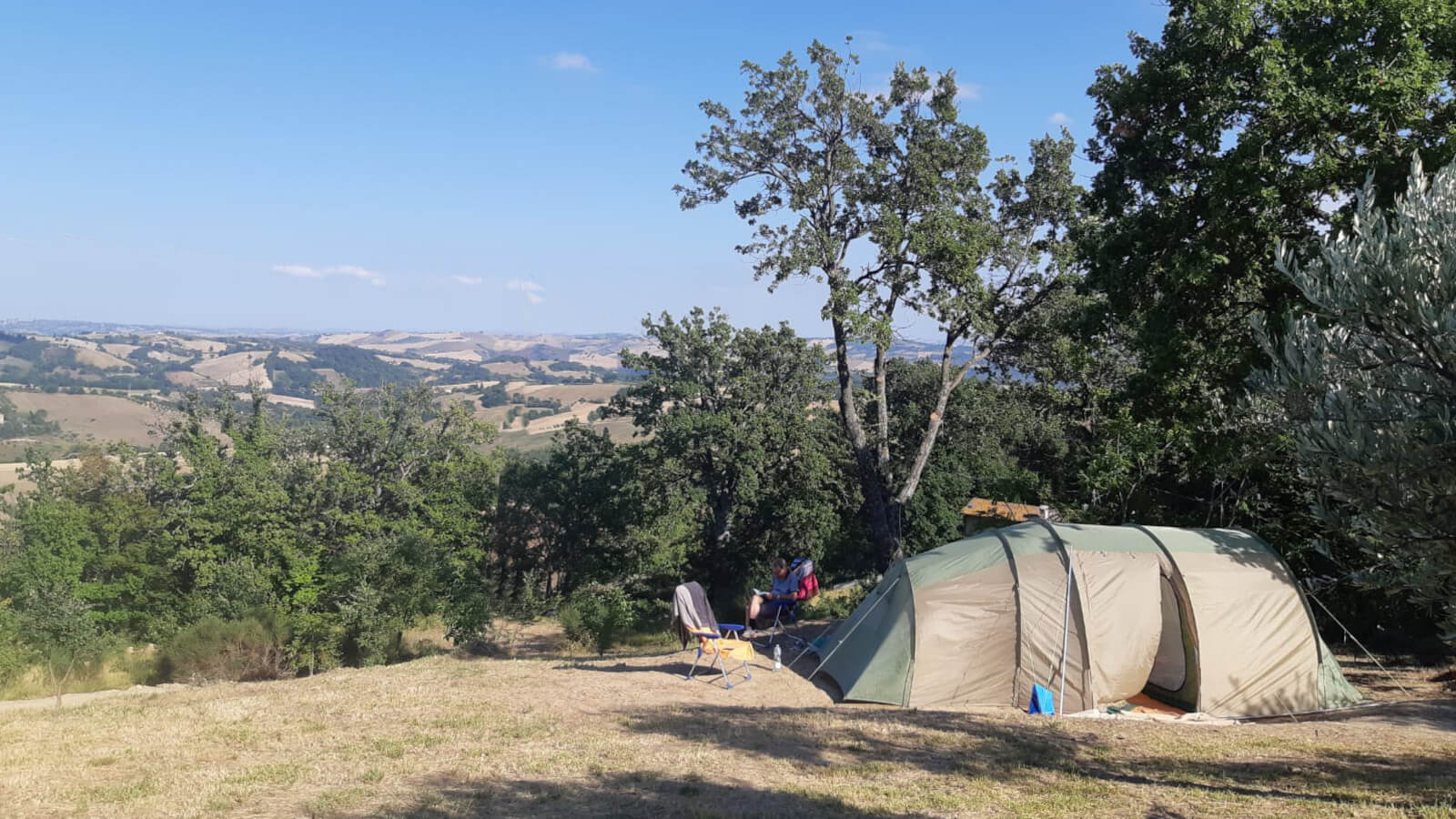 Camping Le Farfalle is een kleinschalige agricamping in het hart van Le Marche, perfect voor wie op zoek is naar rust en authentiek Italië. Met slechts zeven kampeerplaatsen behouden we een intieme sfeer waar je elkaar kent en waar persoonlijke aandacht vanzelfsprekend is.